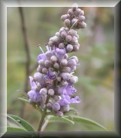 Der im Spätsommer blühende Mönchspfeffer besitzt gegenständige, gefingerte Blätter mit bis 10 cm langen Fiederblättchen (s. Abbildung links) und kleine, hellviolette, in dichten, endständigen Infloreszenzen angeordnete Blüten (s. Abbildung rechts).