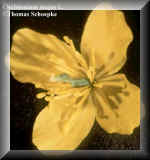 aus den 4 gelben, etwa 8 bis 10 mm langen und breit eiförmigen Kronblättern,
